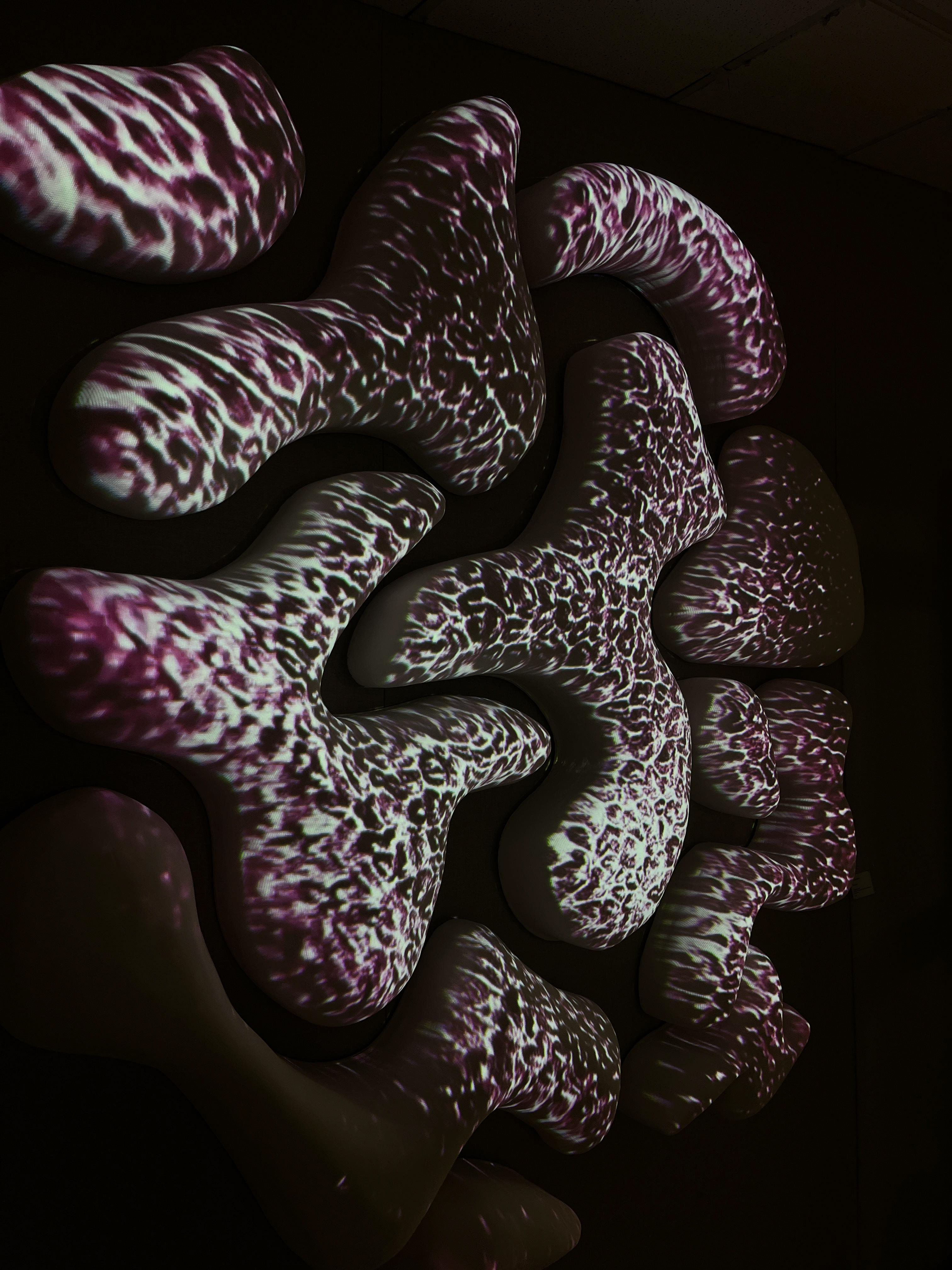 I was approached by my friend Jack Eichner to develop some visual art to project on a 6 x 6 ft sculpture made up of 11 individual pieces for a SCAD fibers open studio. We reached out to Pamlico a sound designer who fit the mood we were going for and had him compose how he felt while watching the videos being projected. The location for his installation would be in a small intersection where people would be attending workshops in adjacent rooms so we decided a variety of different works would be optimal for visitors to have a new viewing experience with each pass. As the night went on this room became a celebration of community and arts and brought people together for the love of art.